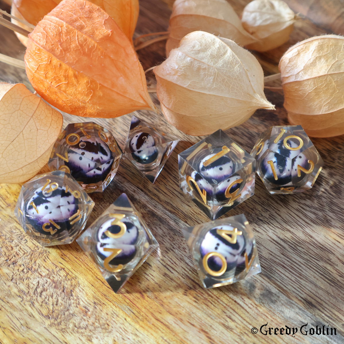 Colours : Transparent Liquid Core, Bright Purple Eyes with Gold numbers