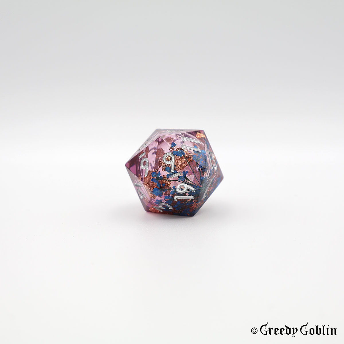 Liquid Core Dice Set (Transparent Purple with Blue Flowers)