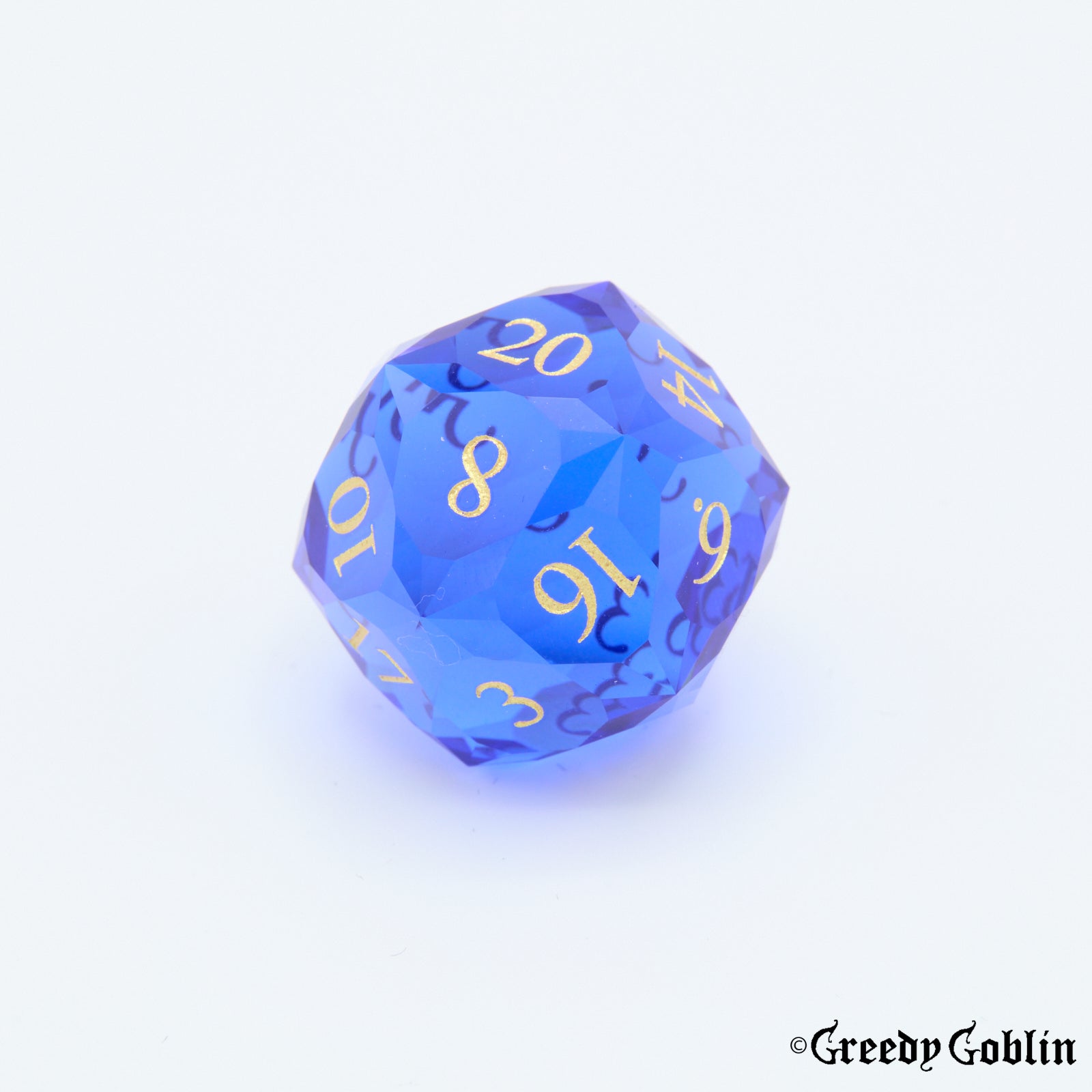 A beautiful glass set of polydice, intricately facetted to ensure you will stand out from your fellow adventurers. The impeccable surface finish makes this both a functional tool for your campaigns, and an amazing display piece for whenever you have a break in the tavern.