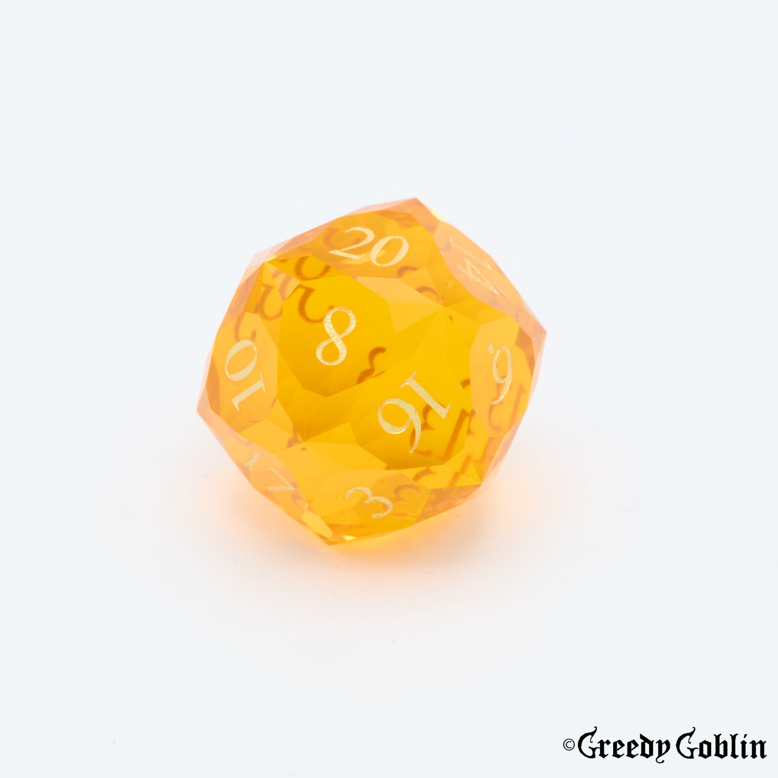 A beautiful glass set of polydice, intricately facetted to ensure you will stand out from your fellow adventurers. The impeccable surface finish makes this both a functional tool for your campaigns, and an amazing display piece for whenever you have a break in the tavern.