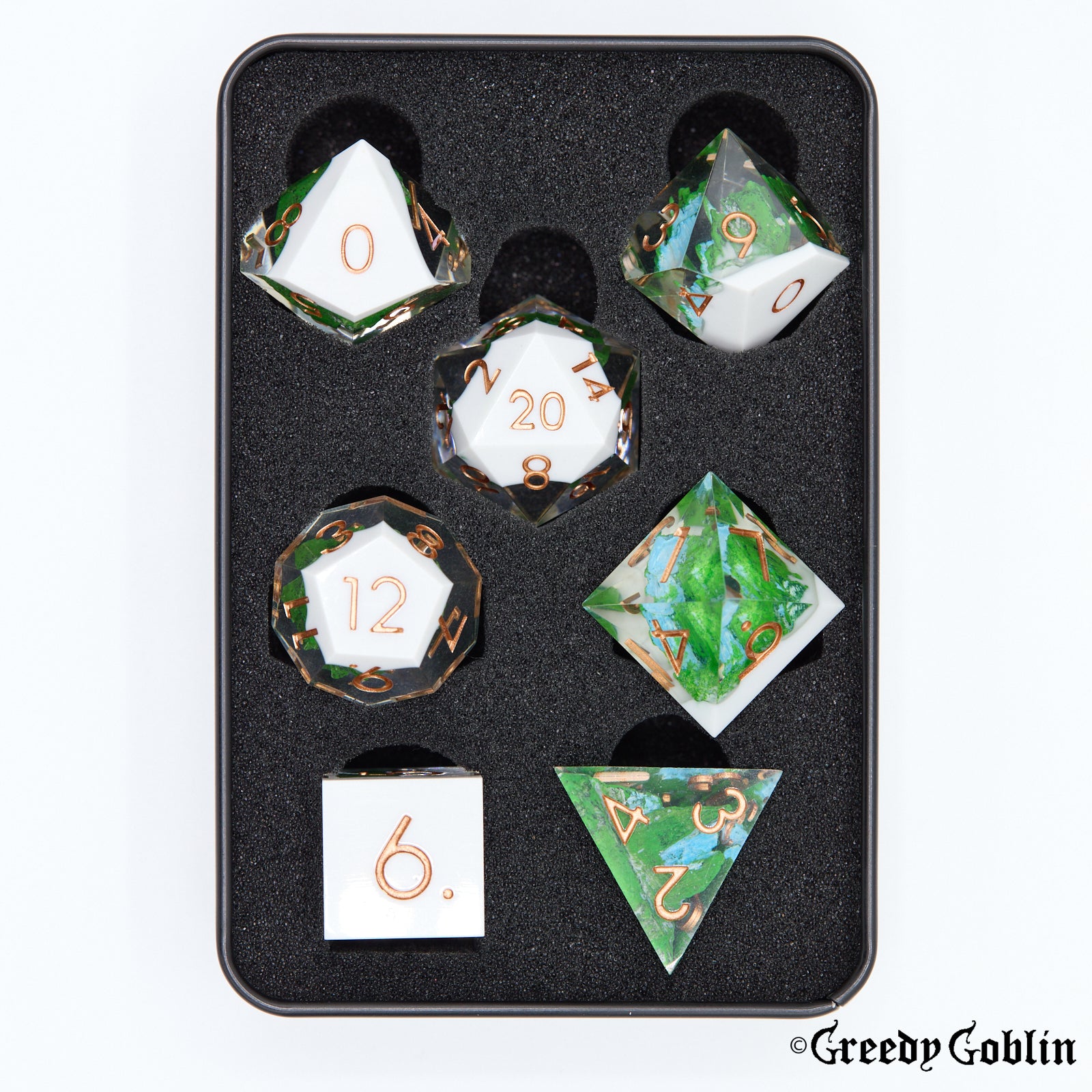 Colours : Transparent with Green and Blue Mountains with Gold numbers.